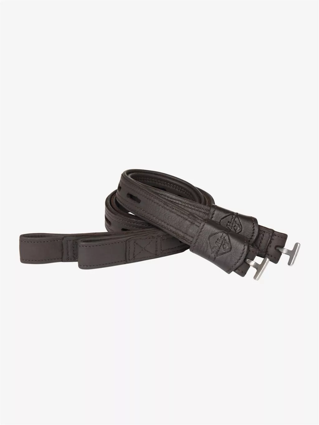 Linking to the saddle using a simple, flat leather loop, these stirrup leathers eliminate the need for a bulky steel buckle that fastens most traditional stirrup leathers. They use a cleverly designed T-bar fastening to loop through and adjust the stirrup length near the stirrup iron, eliminating the need to double up the stirrup leather along its length as traditional leathers do. A neat leather cover, stamped with the LeMieux logo, covers the join for protection and style.