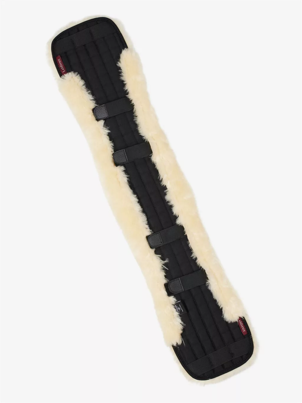 Half-lined with super soft high density faux lambswool, this luxurious LeMieux Simuwool Dressage Girth Cover is breathable with just the right amount of cushioning to prevent sweat build-up and rubbing.
