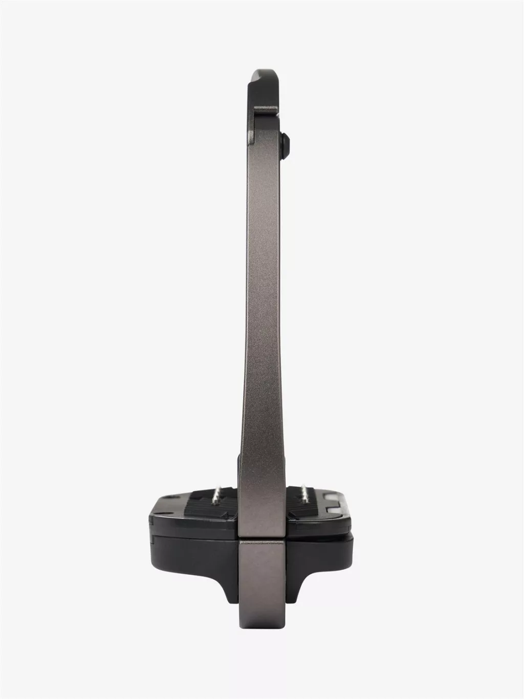 The ergonomic footplate of the Control Stirrup is set at 0° with a cross-track grip surface with embedded hardened steel pins to provide maximum security for the boot.