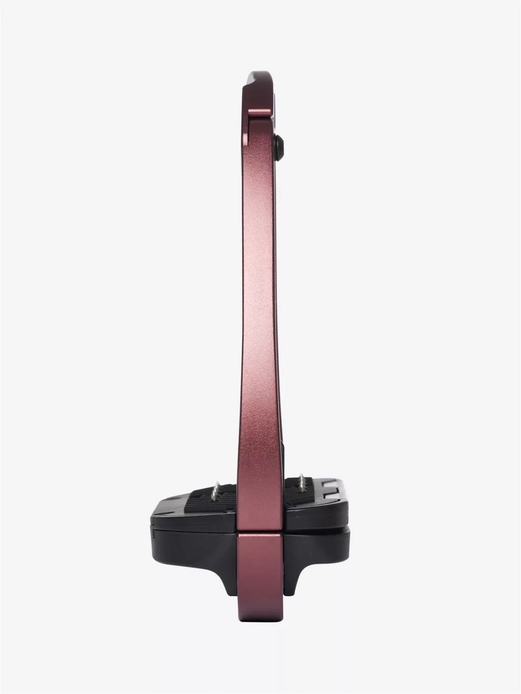 The footplate is supported by a twin-balance arch system that distributes the weight evenly across the base of the stirrup frame. The apex of the frame is recessed and off-set, encouraging a 45° outward orientation which makes it easier for the rider to locate the optimum angle for the foot and regain a lost stirrup.