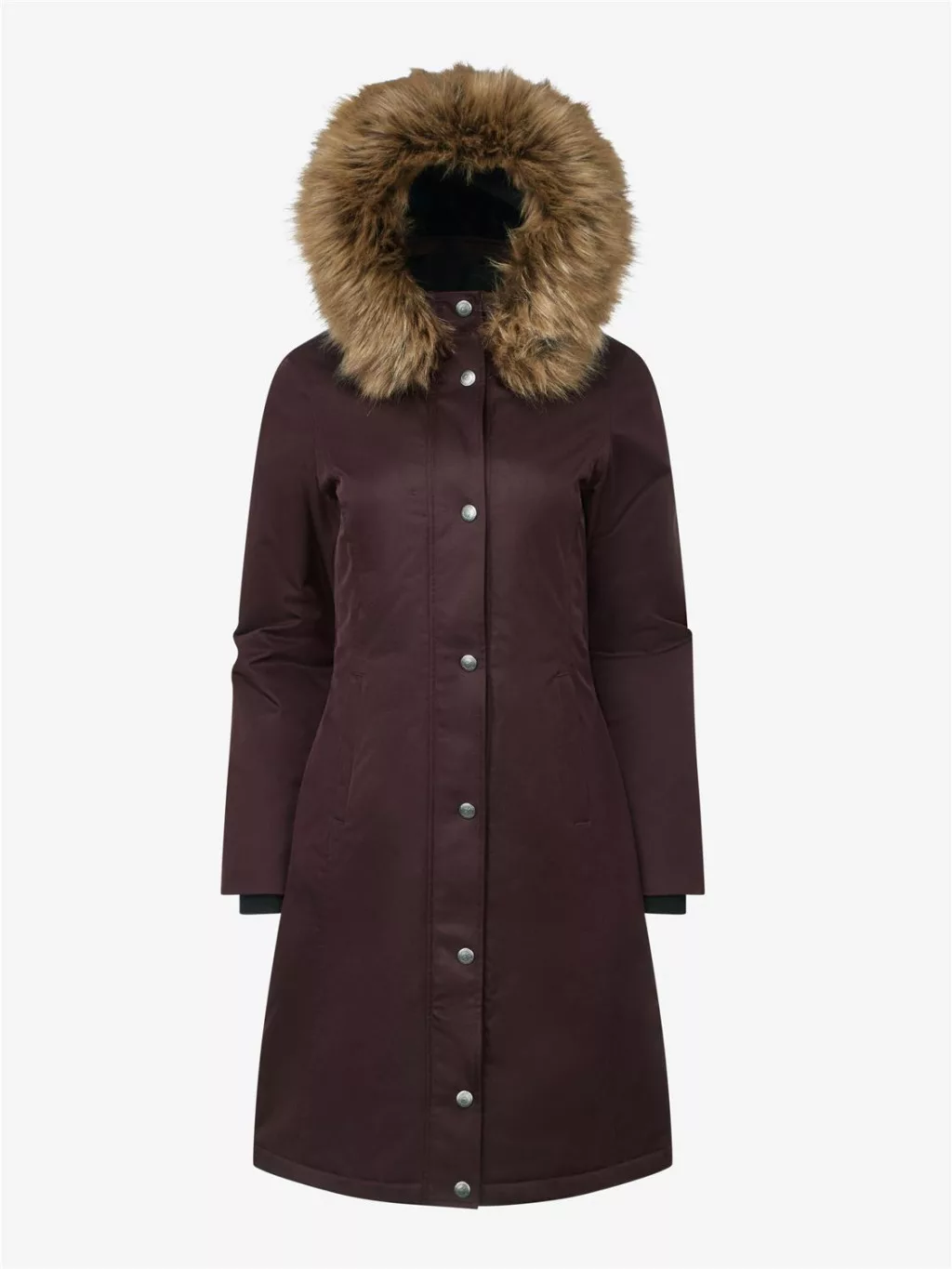 Combine practicality with elegance in the stunning Anya Waterproof Riding Coat, ideal for equestrians who want to look good while staying warm and dry.Waterproof twill outer fabric with fully taped seams offers waterproofing to 8000mm, while remaining breathable to 3000mvp to keep you comfortable no matter what. The deep pile faux fur half lining feels luxurious and traps a layer of warmth next to your body. The versatile detachable hood has a removable soft faux fur trim to keep cold draughts out all winter long.Perfect for riders who want to stay cosy in the saddle, there's a deep back hem vent with magnetic closures and inner adjustable elastic leg straps to prevent flapping and create a stylish silhouette.