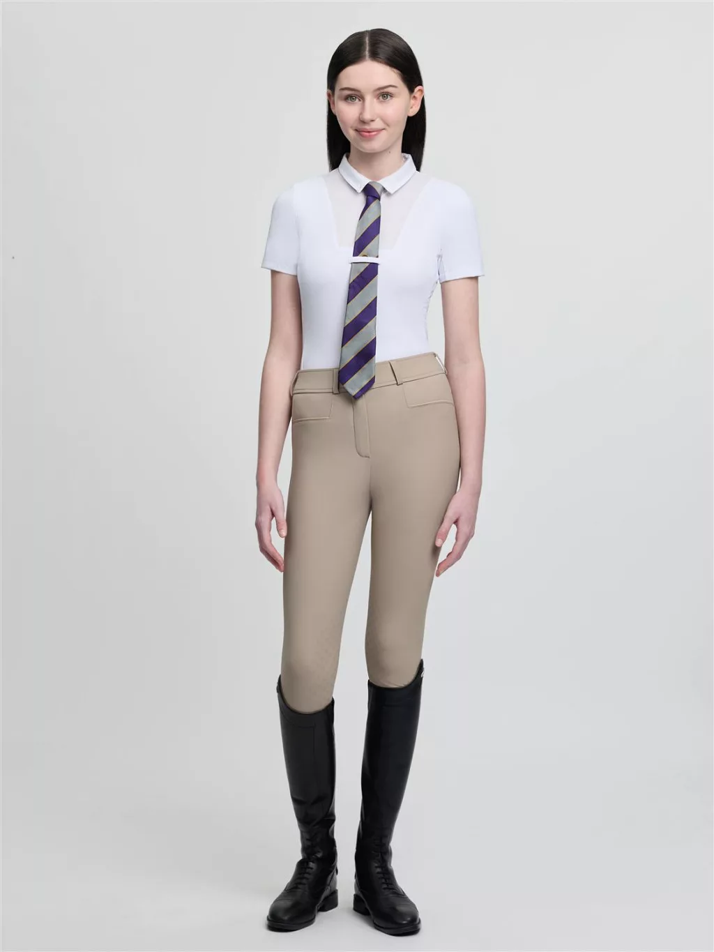The definition of a great all-rounder, this shirt excels at Pony Club and Riding Club competition level. Mesh panelling at the back keeps you cool, while you keep your presentation on point with a cotton bib, pin holes in the collar for your tie pin, and a handy tie loop.