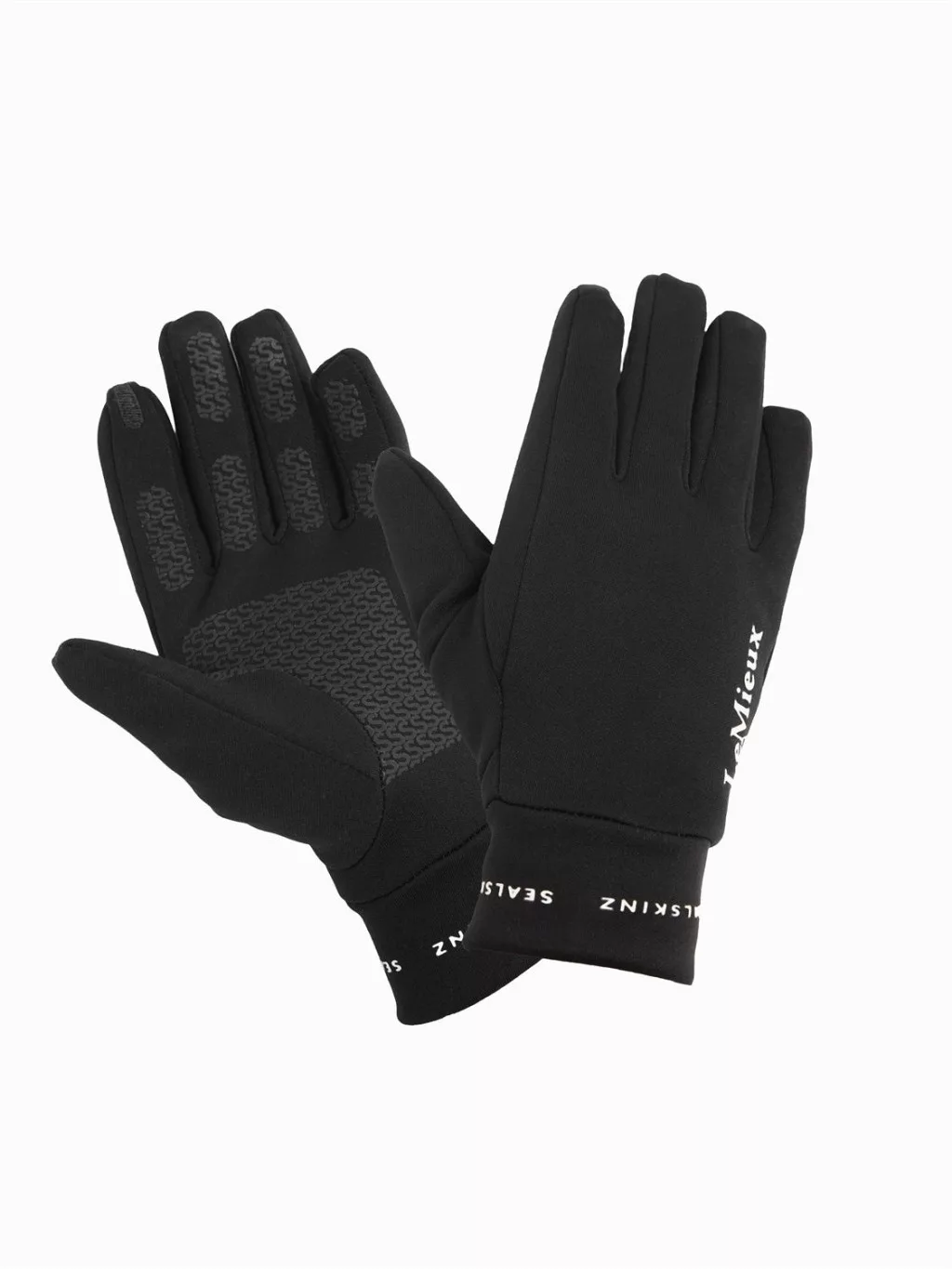 Fully waterproof Nanosealz™ lightweight thermal stretch fleece gloves. These riding and yard gloves are made for everyday use and built to last from one season to the next. Lightweight and sleek, for freedom of movement, these thin, thermal gloves are ideal for use in cold weather, with an added Aquasealz™ breathable waterproof membrane to protect you in even the wettest conditions. The S grip formation provides touchscreen compatibility and a perfect grip for reins and tack. Perfect for wearing on its own, or as a liner beneath your favourite insulated gloves for added protection.
