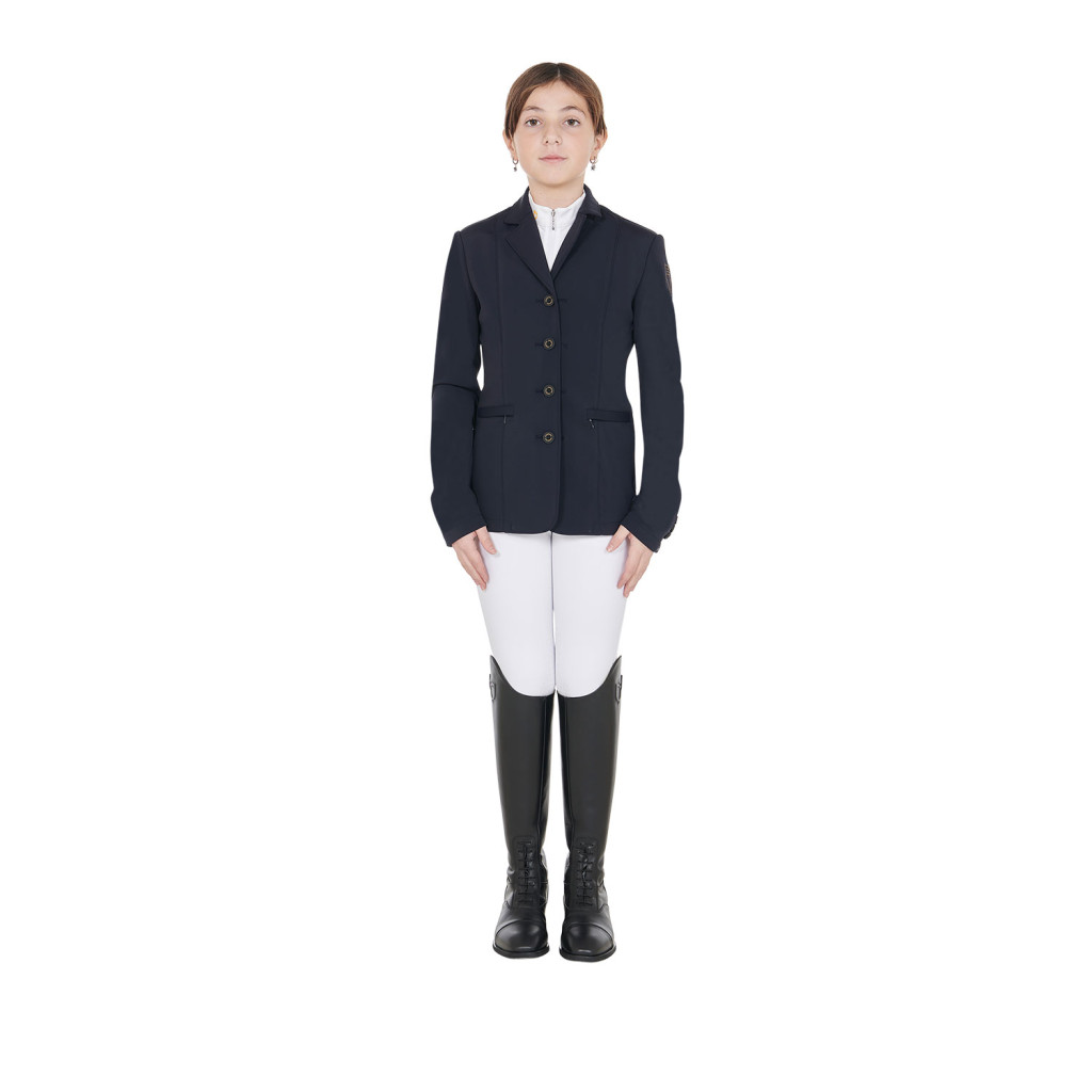 Gyerek dzsekit négy gombbal, ami a legjobb választás a fiatal lovasok számára! Ez a verseny dzseki nemcsak stílusos, hanem rendkívül kényelmes is. A prémium minőségű anyag biztosítja a szabad mozgást, míg a klasszikus négy gombos dizájn eleganciát kölcsönöz.