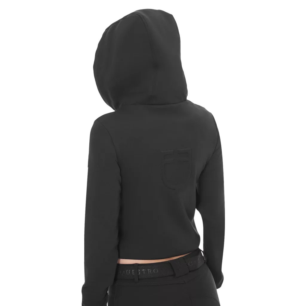 Női rövidített kapucnis pulóver a stílus és kényelem tökéletes elegyét képviseli. A klasszikus fekete szín minden ruhatár alapdarabja, így könnyedén kombinálhatod bármilyen szettel. A