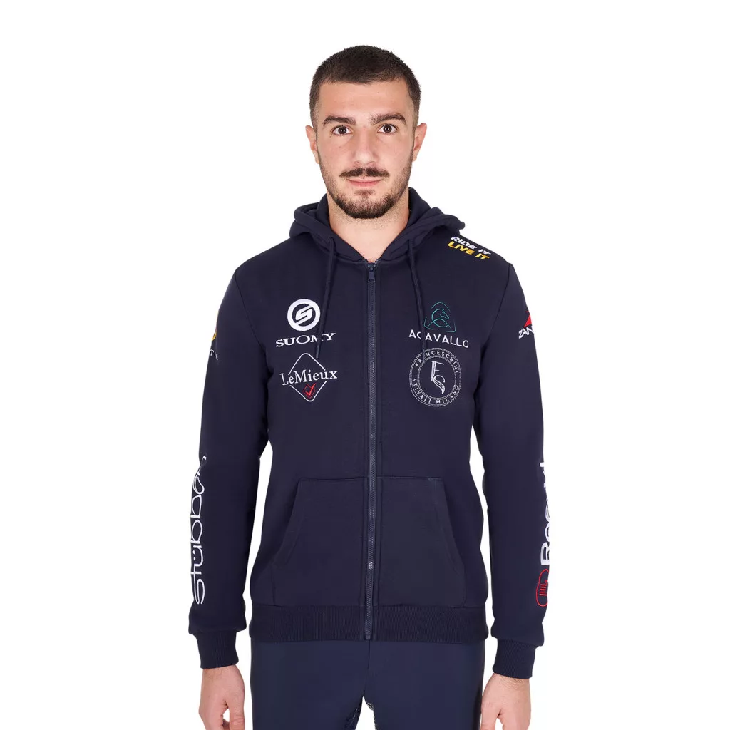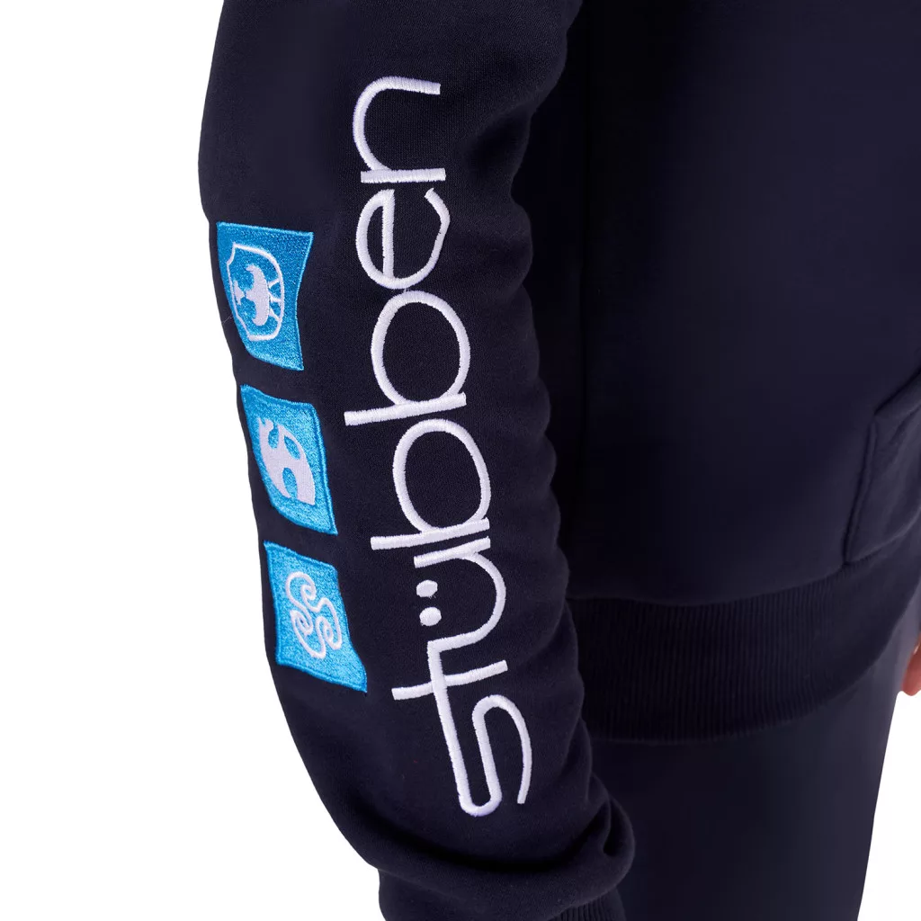 Férfi kapucnis pulóver több logóval! Ez a pulóver egyedi dizájnjával és kényelmes anyagával tökéletes választás a mindennapi viselethez.