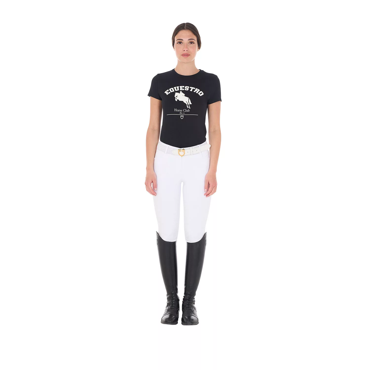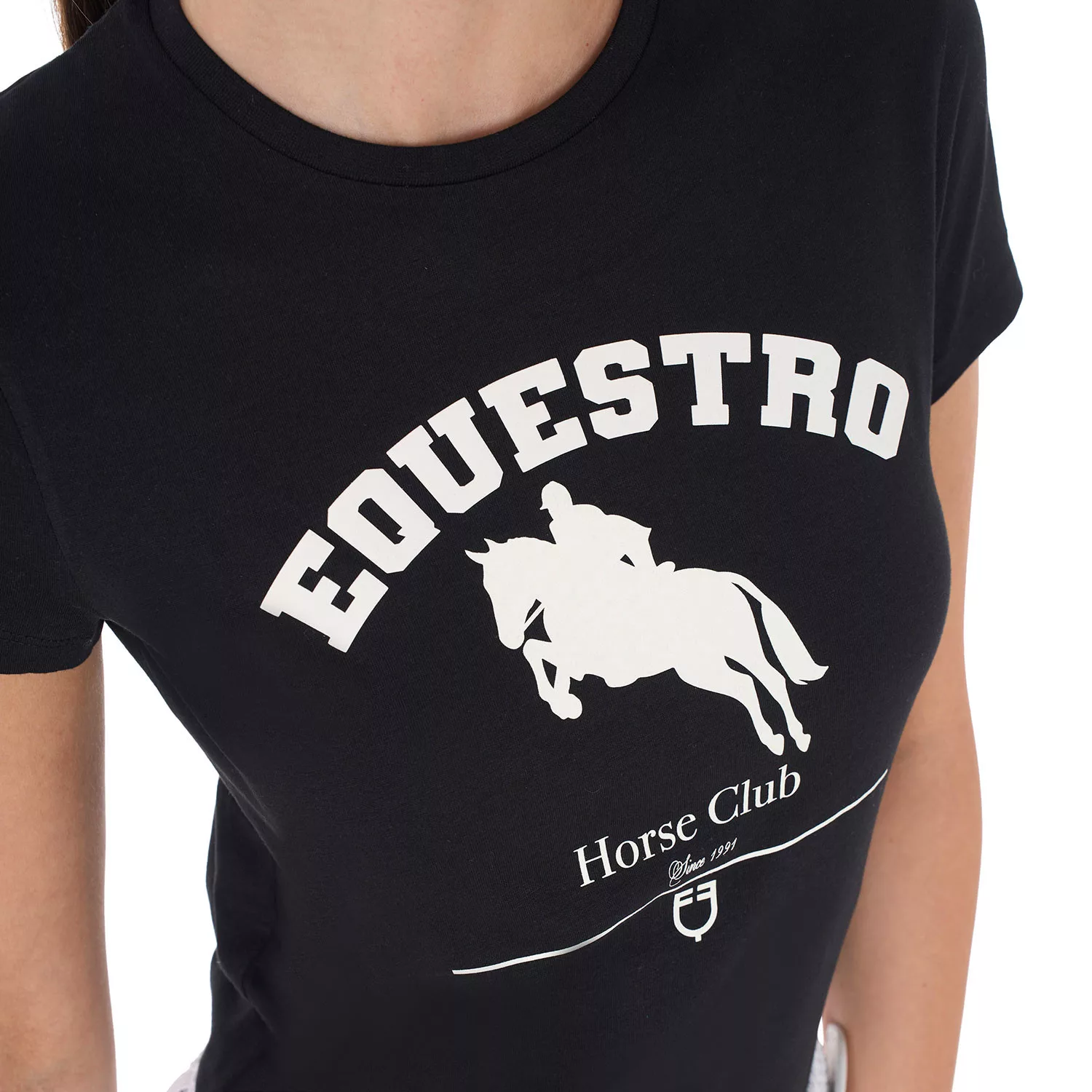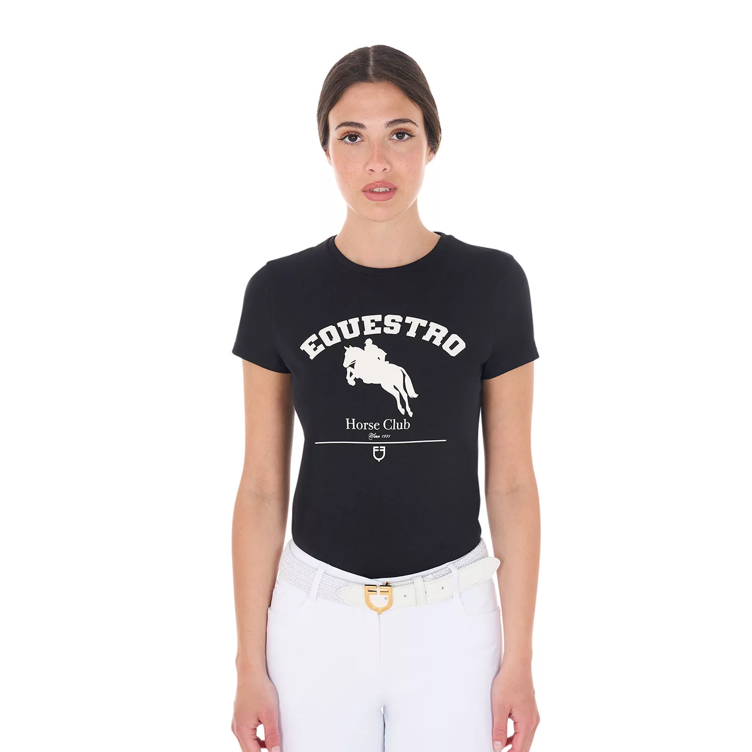 Női Ugró Lovas Klub Pamut Pólóval! Ez a póló nemcsak divatos, hanem kényelmes is, így ideális választás a mindennapi viselethez vagy akár a lovas edzésekhez is.