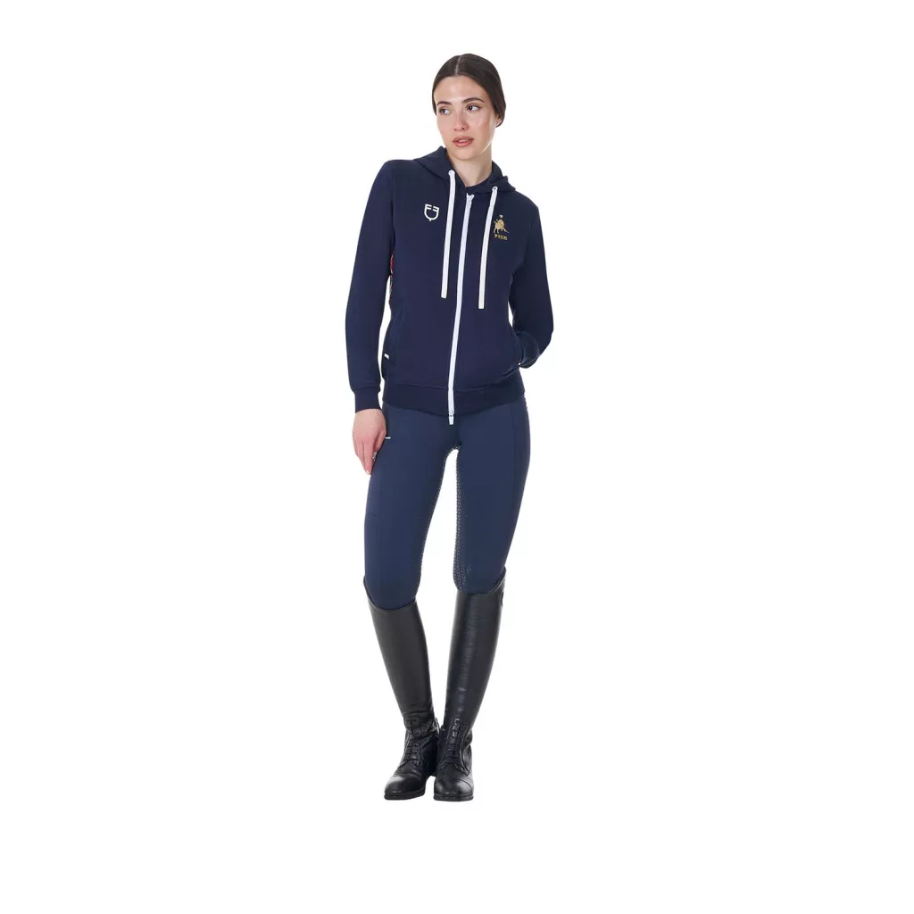Női kapucnis pulóver Equestro X FISE segítségével! Ez a pulóver nemcsak divatos, hanem rendkívül kényelmes is. A puha anyagának köszönhetően ideális választás a mindennapi viselethez, akár lovagláshoz, akár a városban való sétához.