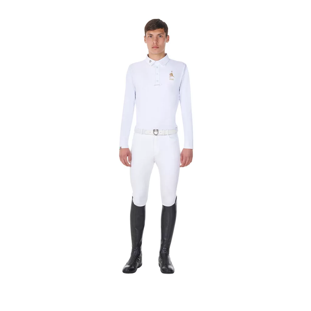 Férfi hosszú ujjú versenypóló Equestro X FISE - a tökéletes választás minden versenylovas számára!