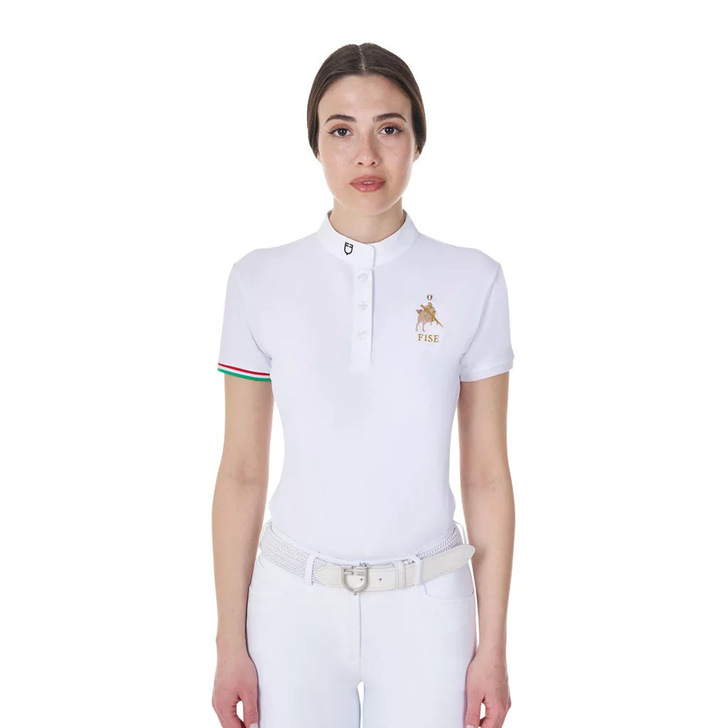 Fedezd fel a stílust és a kényelmet a Női karcsú versenypólóval, amely az Equestro X FISE kollekció része! Ez a póló tökéletes választás versenyekre, hiszen nemcsak divatos, hanem funkcionális is.