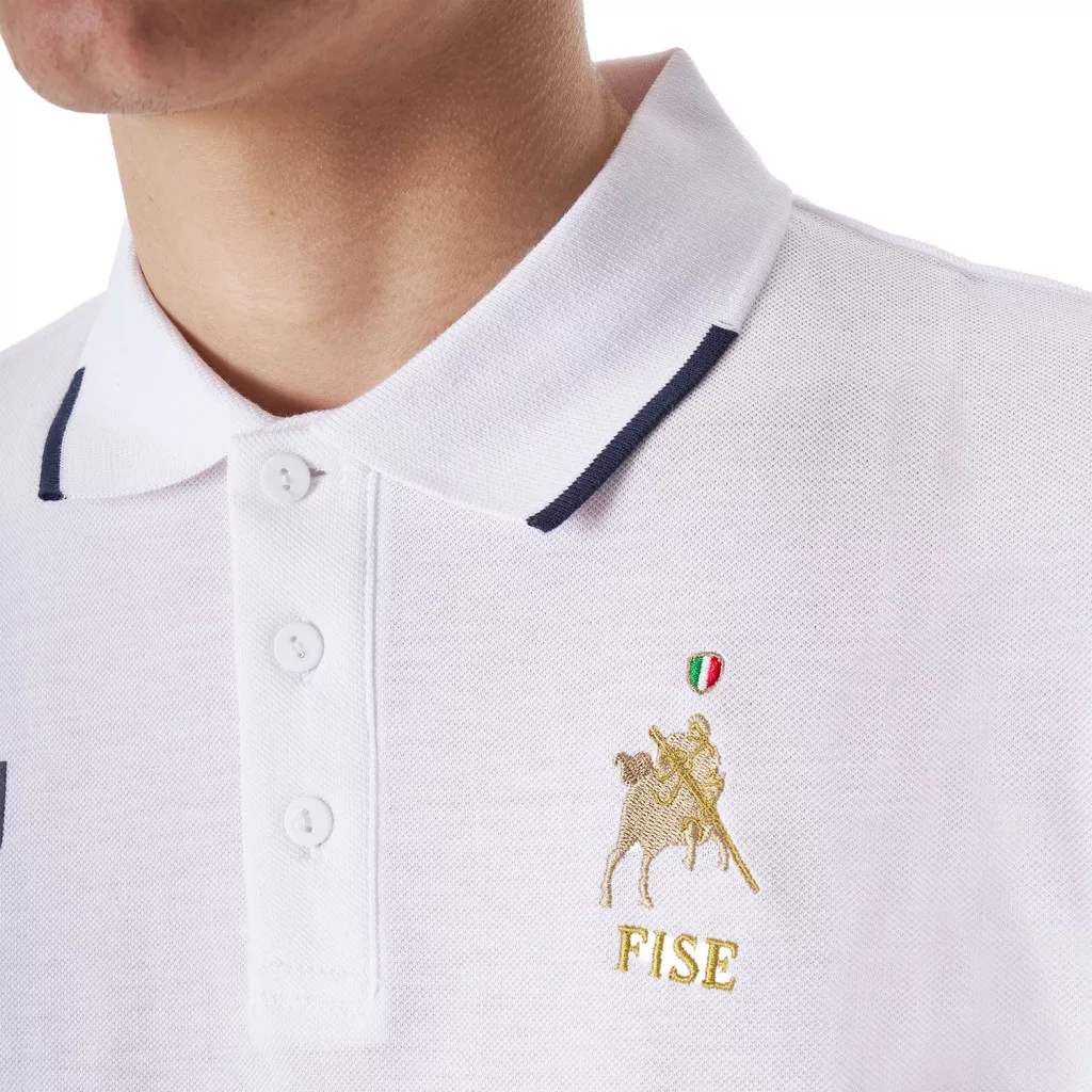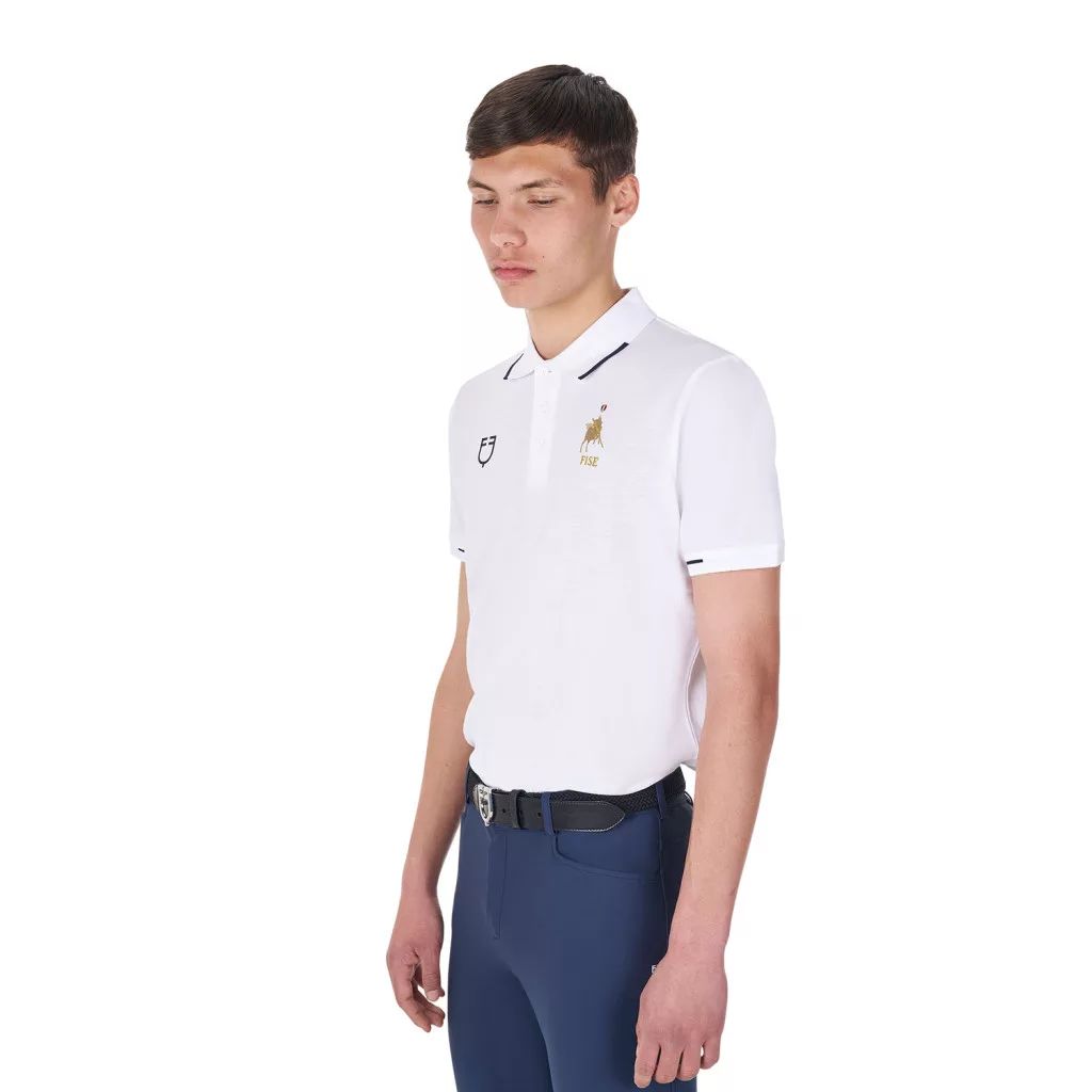 Férfi háromgombos edzőpóló Equestro X FISEEz a fehér edzőpóló nemcsak divatos, hanem rendkívül praktikus is!