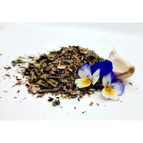Összetevők: sörélesztő, fokhagyma, háromszínű árvácska, csalán, borsmenta, lenmagpehely, máriatövis mag