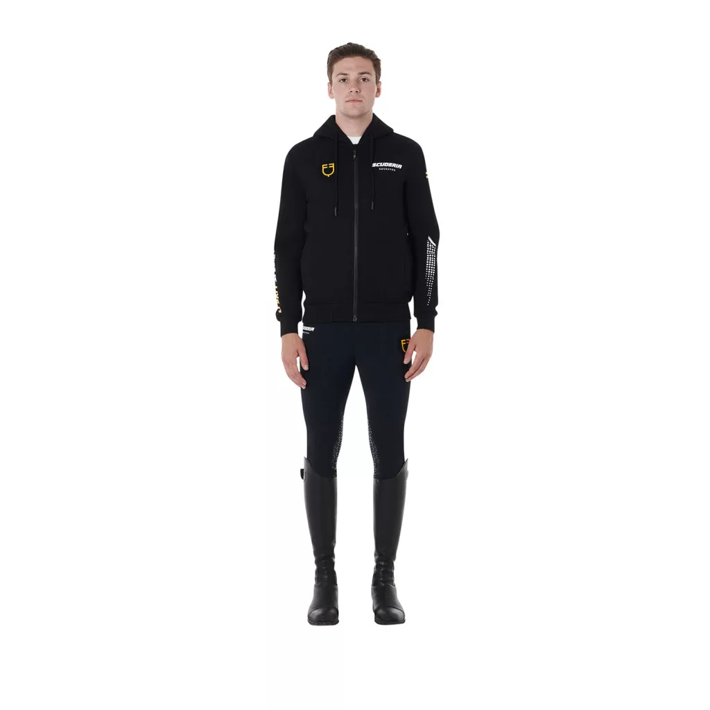 Scuderia Equestro férfi kapucnis pulóver a kényelem és a stílus tökéletes kombinációja. A puha fleece anyag nemcsak melegen tart, hanem rendkívül kellemes tapintású is, így a legjobb választás a hűvösebb napokra.