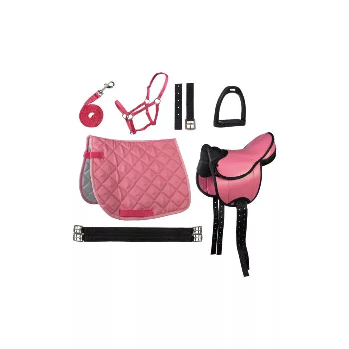 Könnyű, praktikus nyereg kezdő lovasok vagy pónilovaglás számára. A szett minden szükséges kiegészítőt tartalmaz, így azonnal használatra kész.