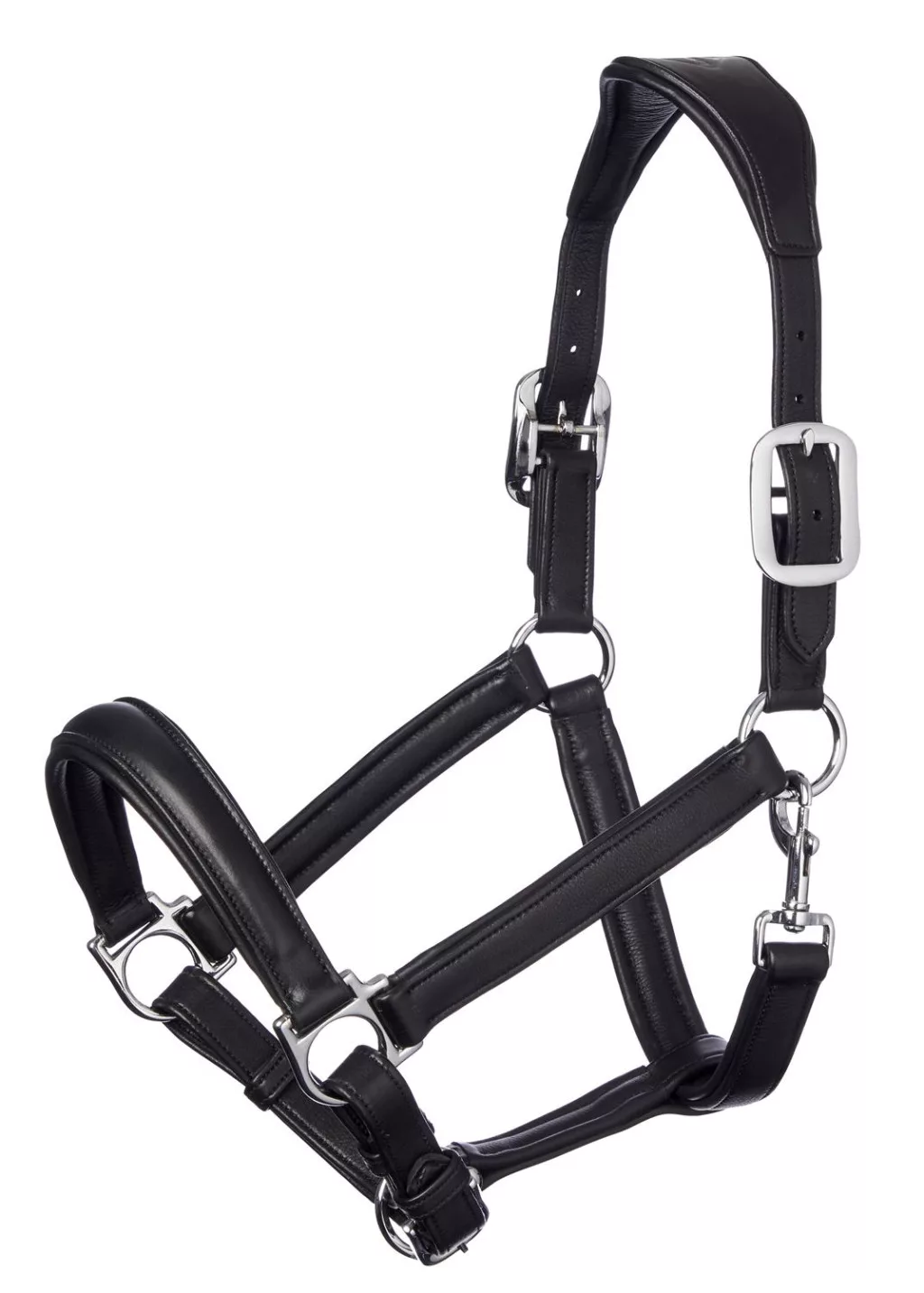 This beautifully crafted padded leather headcollar has an anatomically shaped headpiece and noseband to provide complete comfort to the horse.