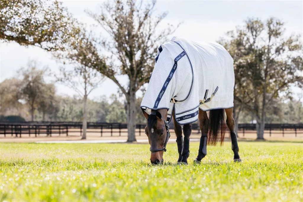 The unique, patented two-part front skirt and patented 45° angled front closure allow for non-restrictive movement around the shoulder, providing your horse with complete freedom for playing and grazing.