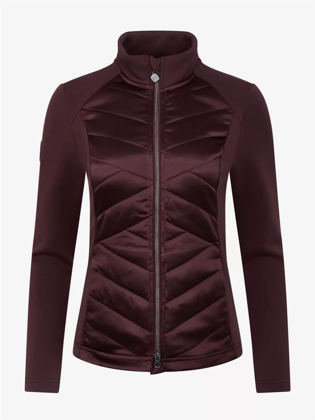 Add a touch of style to your wardrobe with the perennially popular and elegant LeMieux Dynamique Jacket. Perfect for those chillier days, the Dynamique Jacket is the perfect blend of practicality and style, with a super soft lining and padded chevron satin panelling.The shaped fit creates a flattering outline while the detailing of the front zipped pockets, full zip closure and LeMieux badge give a refined finish.