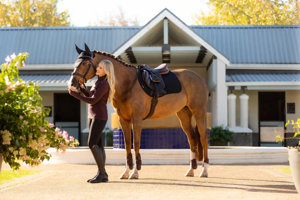 Designed for elite riders with technical performance that everyone can enjoy, the soft shell fabric of the Essence Collection of saddle pads exudes class.The contour quilted soft shell upper, meticulously designed to hug your horse's curves without wrinkling, is teamed with a soft, breathable self-cool lining. The cooling material is woven with cooling fibres, controlling heat by transferring heat away from the skin and wicking sweat efficiently to cool your horse. The warmer your horse gets, the harder the moisture-activated cooling lining works under the saddle. Combined with a full 3D carbon mesh spine for maximum airflow, this is a saddle pad uniquely designed for hardworking horses.The high wither shape reduces pressure and enhances your saddle's fit. Elasticated saddle straps, thoughtfully designed to be slimmer at the point of connecting to the D-ring, leave room for extra accessories catering to your specific training needs.The whole pad benefits from extensively researched, soft, friction-free binding that is specially fabricated to contour the edges smoothly. This technique helps retain the perfect saddle pad shape and binding profile. Sporty rubberised piping gives the pad a clean, athletic aesthetic.The sporty matte-textured faux leather girth protection area is complemented by an embossed logo. Our signature LeMieux hidden girth loop channels mean you can precisely place your girth.A unique LeMieux branded faux leather tab provides a luxurious finishing touch.