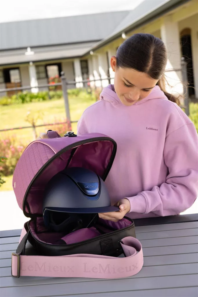 Keep your show hat clean and dry when stored at home or travelling to and from shows.Easy to wipe down and clean, it's a great way to keep your competition helmet looking perfect right up until you need it - without having to keep it on your head! The convenient grab handles and zip top make this bag easy to stash items and carry around.Signature branded badges finish this bag in extra-special LeMieux style.