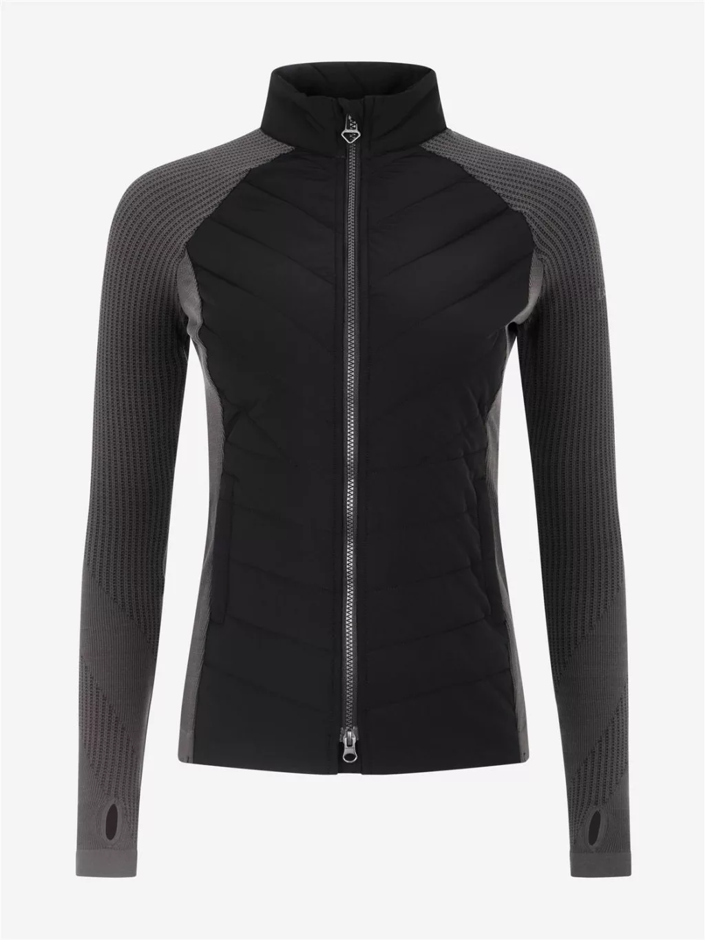 Up the ante in this lightweight classic hybrid jacket. Sculpted, form-fitting and flattering, it's the ideal mid-layer to take you from the stable to the ski slope, and everywhere else in between.