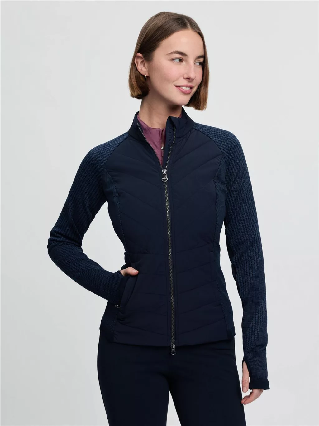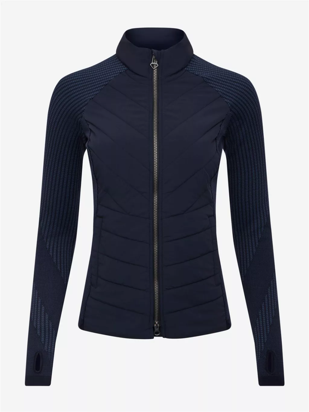 Up the ante in this lightweight classic hybrid jacket. Sculpted, form-fitting and flattering, it's the ideal mid-layer to take you from the stable to the ski slope, and everywhere else in between. The Maddie is structured enough to wear alone as a light jacket, yet comfortable enough to add as a mid-layer to ward off the cold. Warm padded sections will keep your core warm while knitted patterned sleeves and sides make layering under coats and jackets easy.A two-way zip with an eye-catching metal puller gives you versatile styling options, and subtle LeMieux branding speaks volumes about style.