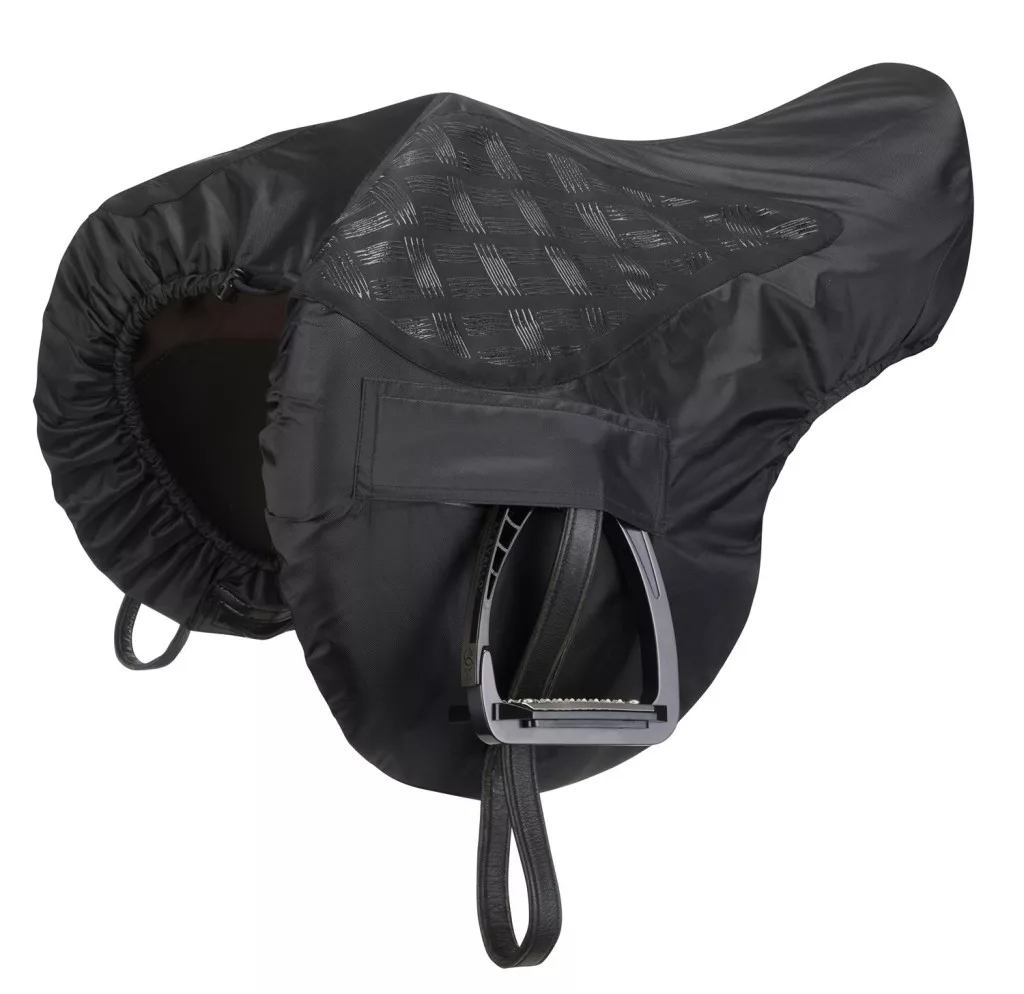 The saddle cover is made of a durable, waterproof polyester outer with a soft fleece lining to protect the saddle. Waterproof rating of 3000mm.