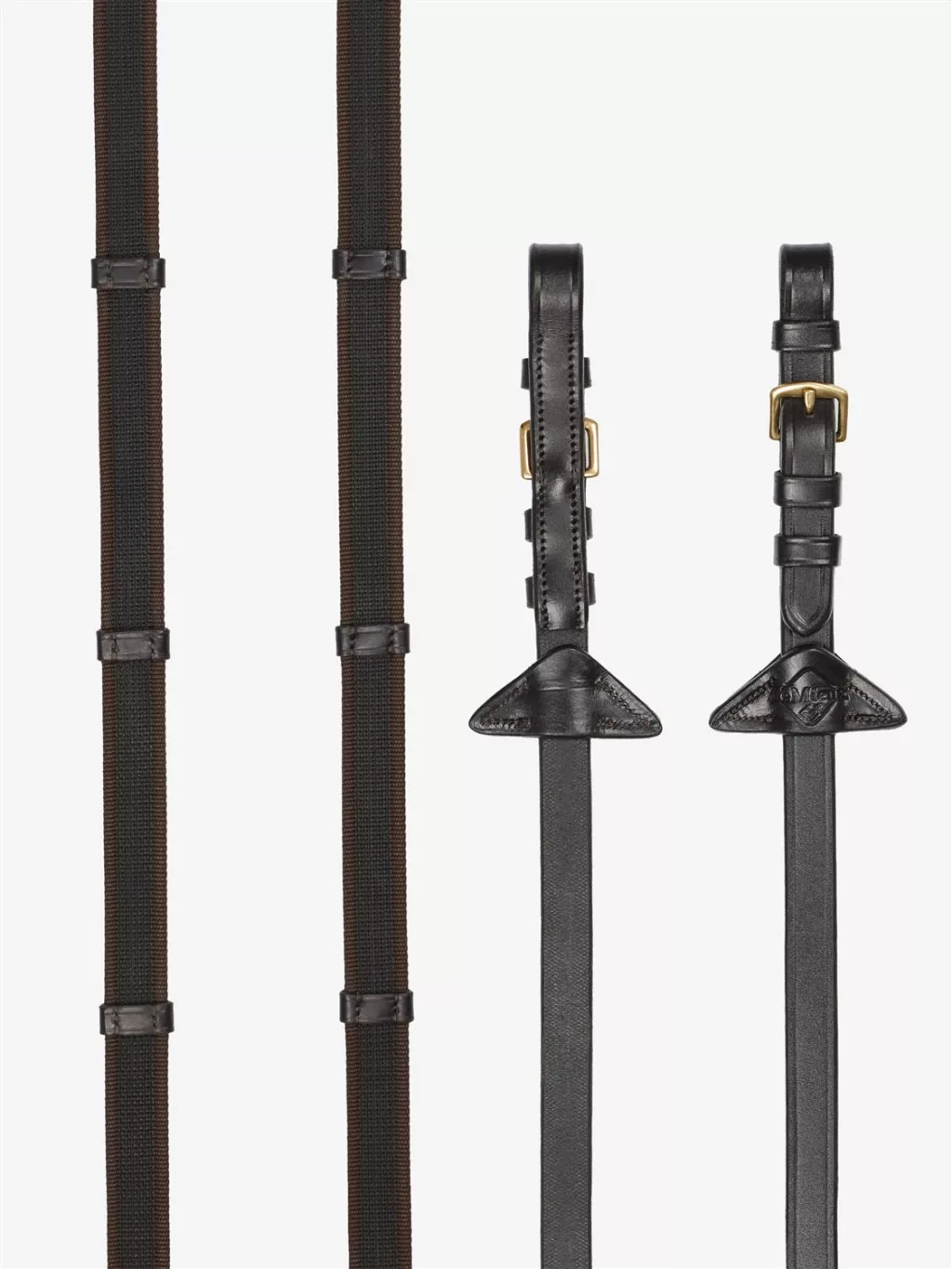 LeMieux Rubber Grip Continental Reins Brown/Brass - Cob