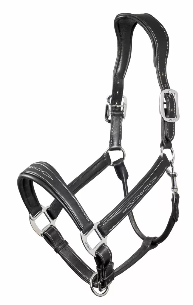 A beautifully crafted, padded leather headcollar with elegant stitching detail for a classic look.