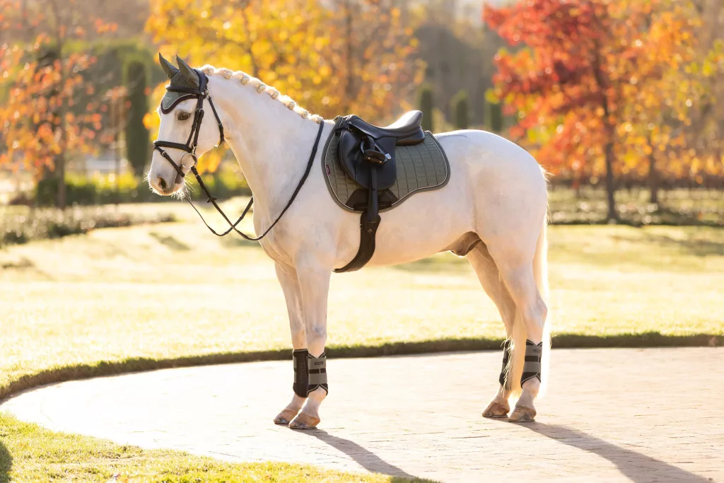 The luxurious yet easy-care suede-effect upper is perfect for everyday occasions, while contoured suede-effect binding prevents mis-shaping. The natural bamboo blend lining absorbs and controls sweat under the saddle. It's also beautifully comfortable and secure, minimising friction even on sensitive-skinned horses.
