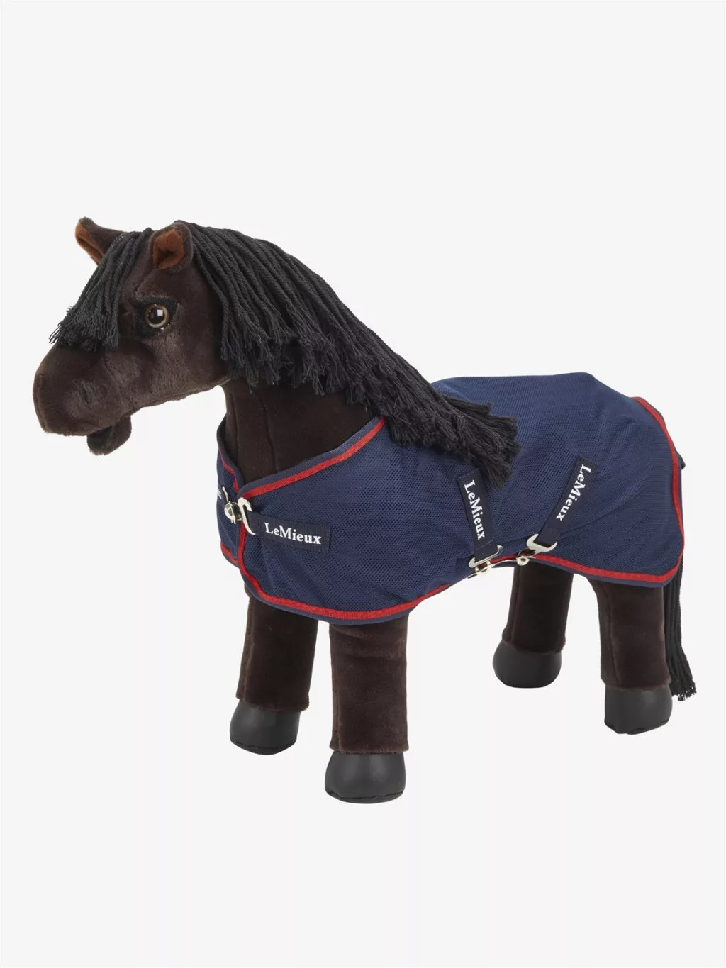 Provide your LeMieux Toy Pony with the perfect way to cool down after a day of adventures with the Toy Pony Mesh Cooler. This show-stopping accessory features a navy mesh body with bold chilli red binding. It also has a T-bar front closure and surcingles – just like the regular-sized version. Create a matching look with our show or racing collections and build out the coordinated setup in style.