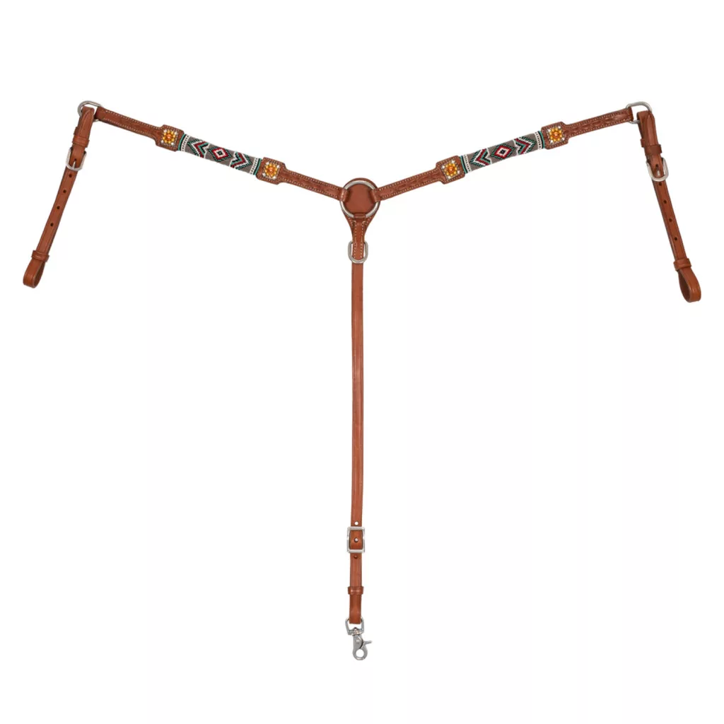 Navajo gyöngyökkel díszített mellkötőt, amely a tradíció és a modern stílus tökéletes ötvözete! Ez a mellkötő nemcsak szép, hanem funkcionális is, így ideális választás minden lovas számára.