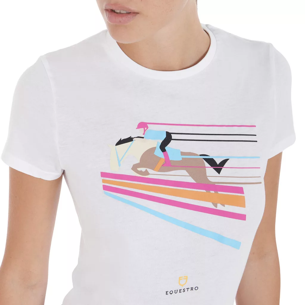 Női pamut pólóval színes ugró ló mintával! Ez a póló tökéletes választás minden lóbarát számára, aki szeretné kifejezni szenvedélyét a lovak iránt.