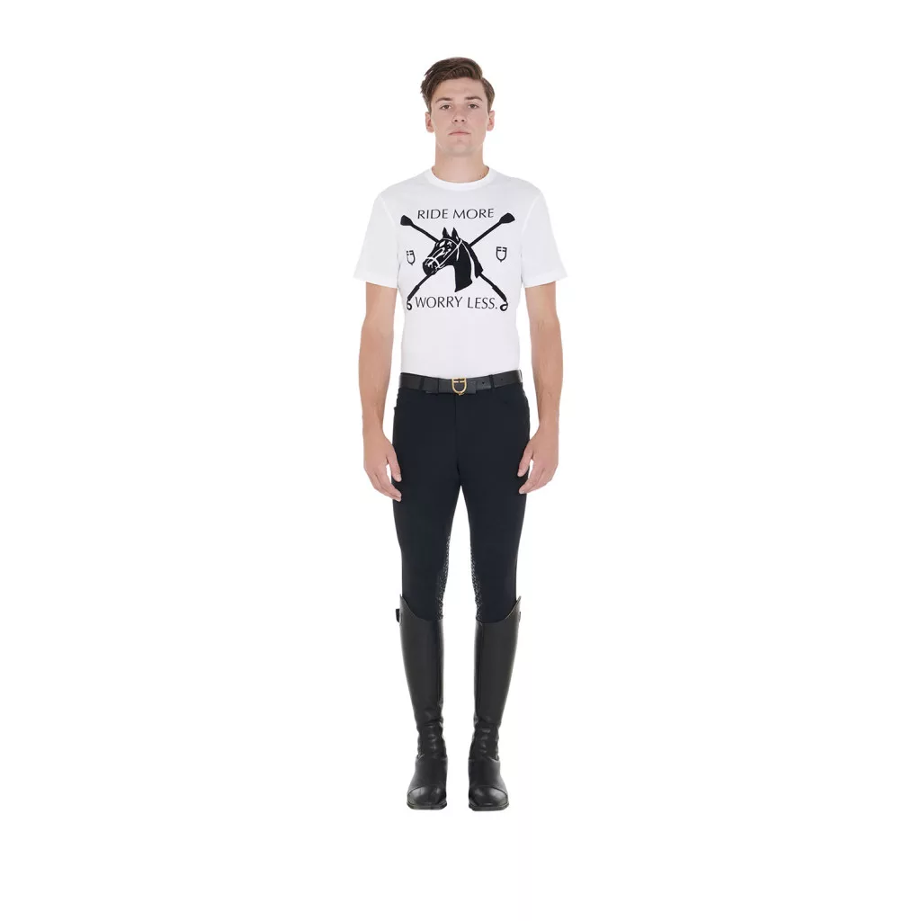 Ez a póló nemcsak divatos, hanem rendkívül kényelmes is, így ideális választás mindennapi viseletre vagy akár lovaglás közben is.