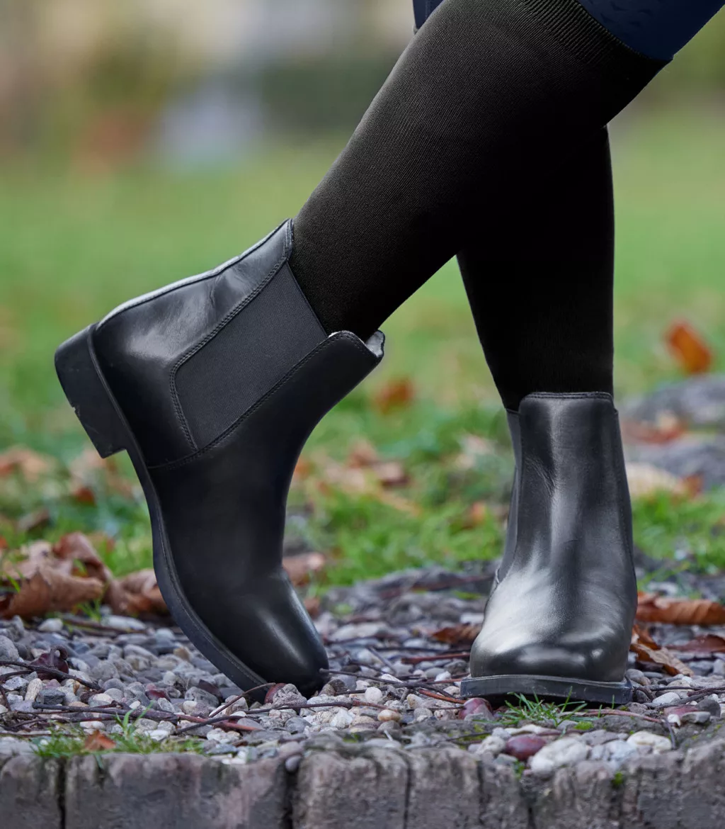 Elegáns designú karcsúsított jodhpur lovaglócipő. Kemény kopásálló, vízálló bőrből készült, elasztikus betétekkel. Belül meleg béléssel.