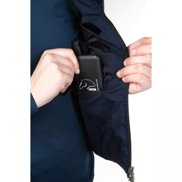 Fűthető lovaglómellény, testhez simuló illeszkedéssel a jobb hőtartás érdekében.