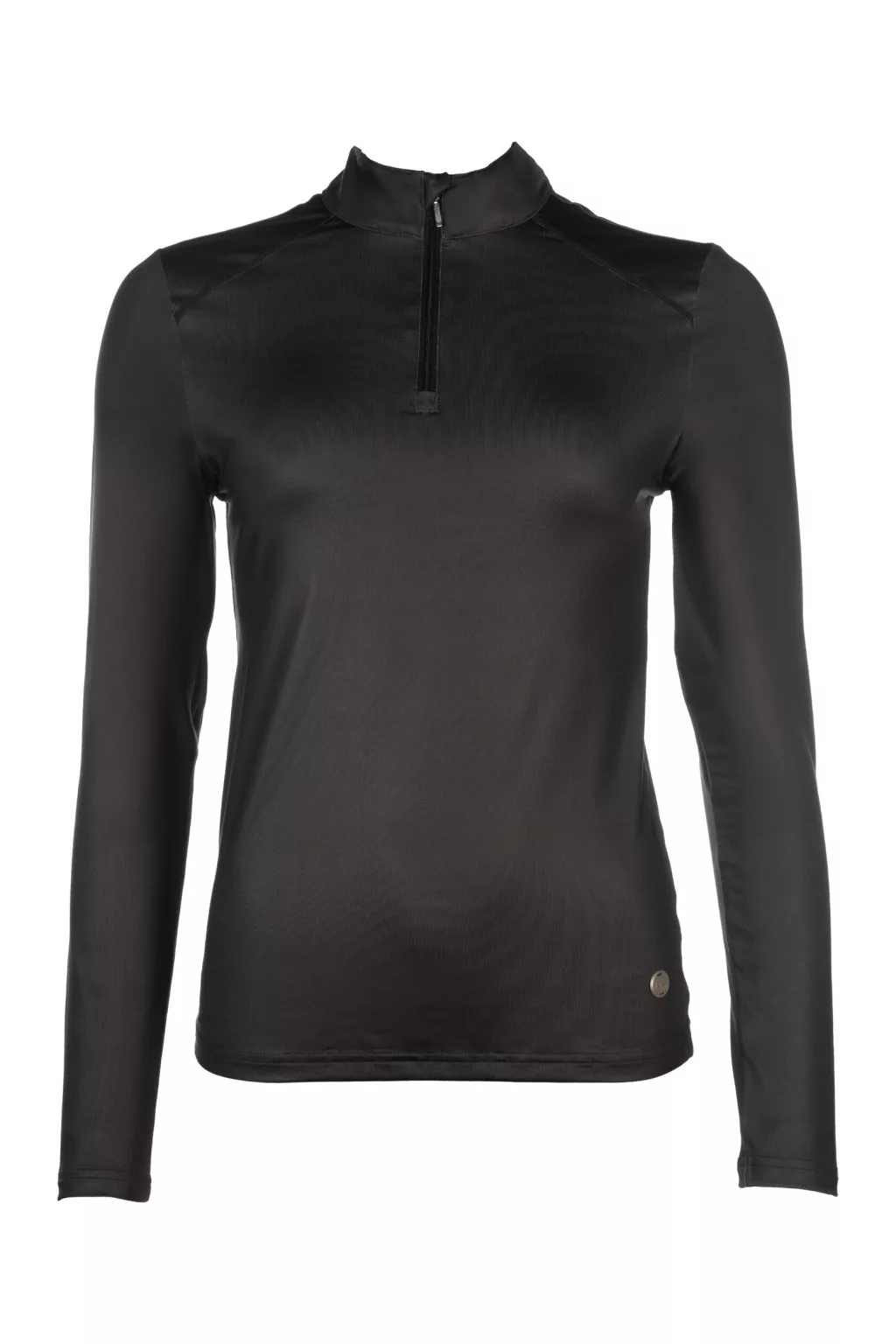 HKM Summer Milano női funkciós póló a nyári időszakra ideális lovas viselet. Könnyű, elasztikus és lélegző anyagból készült. A bal karon HKM logóval ellátott, a nyaknál cipzárral kombinált lovaglófelső. Alakra simuló szabása kényelmes viseletet biztosít minden szakágban.