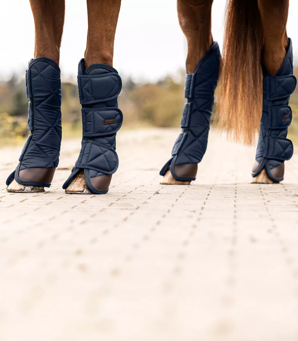 Ezek az anatómiailag formált szállító kamáslik három erős tépőzáras rögzítővel rendelkeznek, amelyek biztosítják az optimális tartást a ló lábán. A belső rész ütéscsillapító habbal és mesterséges nyúlszőr béléssel van ellátva a maximális kényelem érdekében. A sarokterület mesterséges bőr megerősítést kapott a hosszabb élettartamért.