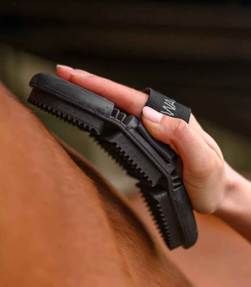 A durva szennyeződések és a sár könnyedén eltávolíthatók a vakaró segítségével. A vakaró két oldalra hajlíthatóságának köszönhetően e különösen jól fekszik a lovas kezébe. A kefe hossza: 18,5 cm.