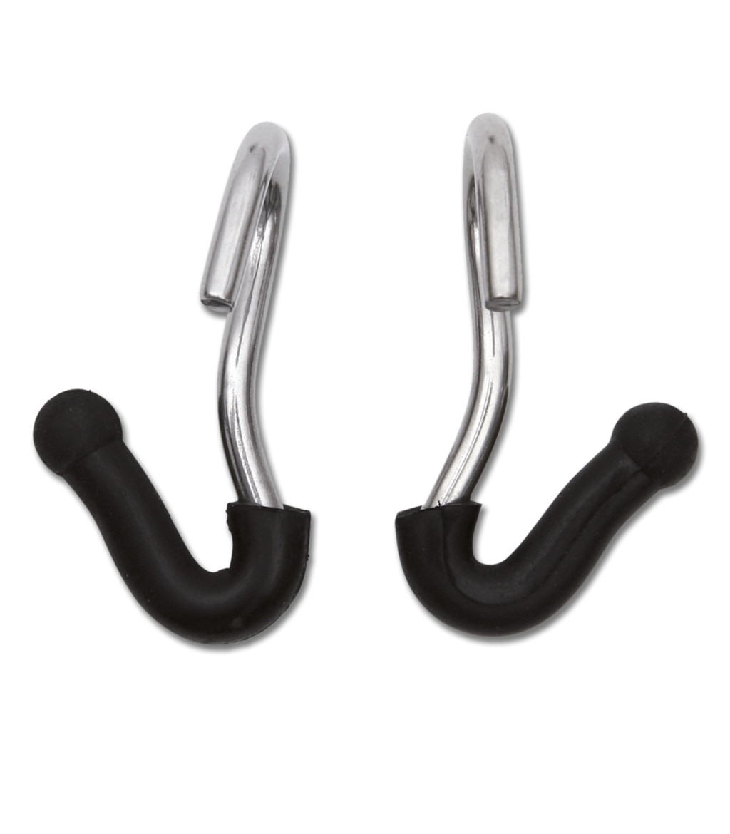 Rozsdamentes acélból készült, gumi bevonatú kampók feszítő zablához. Párban szállítjuk.
