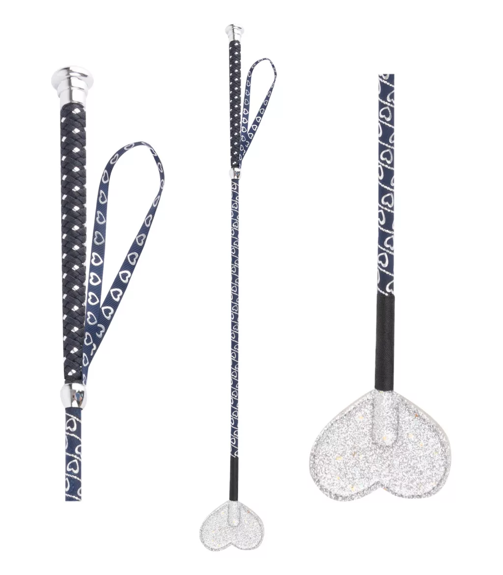 A Waldhausen Little Heart lovaglópálca csillogóscsapó véggel és apró, ezüst színű szívecske mintás alappal rendelkezik. Gumi borítású fogója segíti a tapadást, nehezebben csúszik ki a kézből a használata során. Hossza:65 cm.
