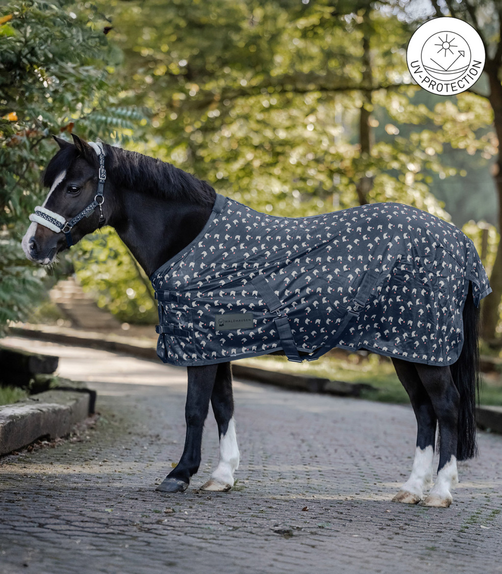 Könnyű légytakaró kis lovacska mintával, dupla elülső rögzítéssel és keresztpántokkal. A Waldhausen Lucky kollekció része.
