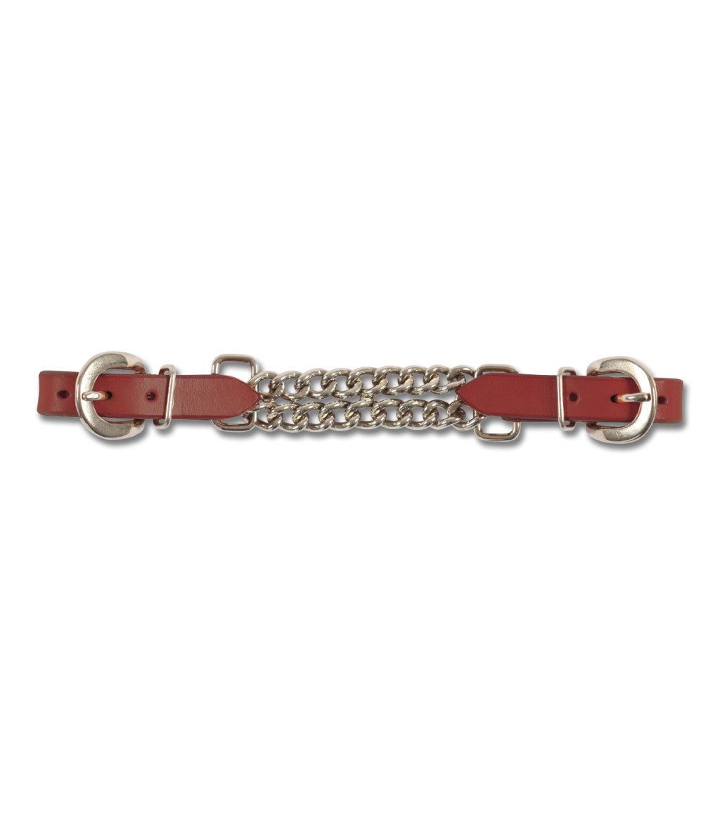 Robusztus, állítható western zablalánc bőrcsatokkal a zablához való rögzítéshez. Állítható. Hossza 23 cm.