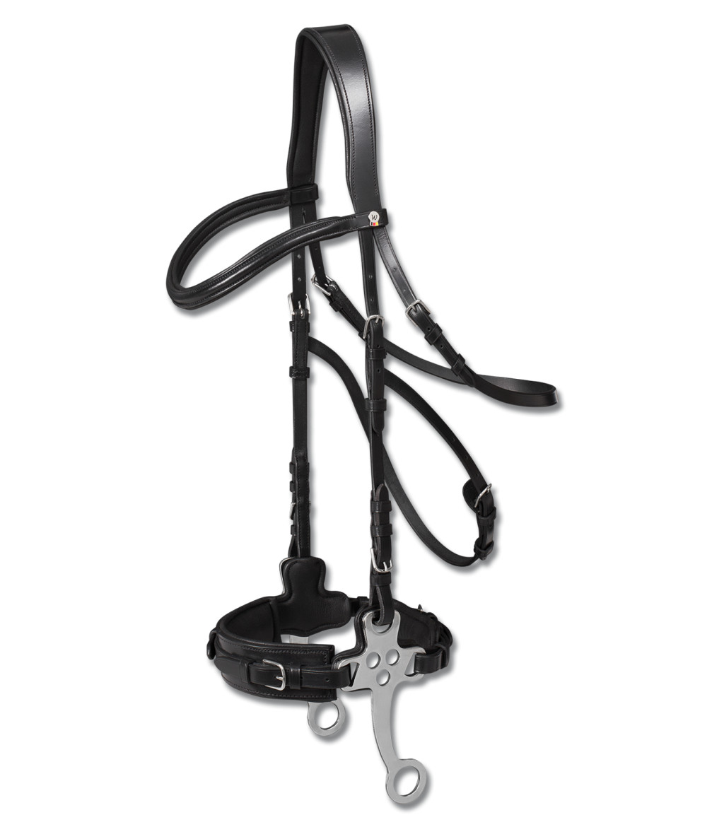 Anatómiai kialakítású fejrész, ívelt homlokszíjjal és zabla nélküli, hackamoreral felszerelve. Puhán párnázott orr és tarkószíj. A kantárt szárakkal szállítjuk. Waldhausen X-Line kollekciójába tartozó termékek mindegyike kiváló minőségű bőrből készült a lehető legnagyobb kényelemért.